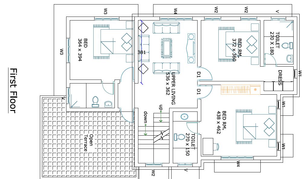First floor - two bedrooms with attached baths, dressing room and living room which can also very well serve as a family room.